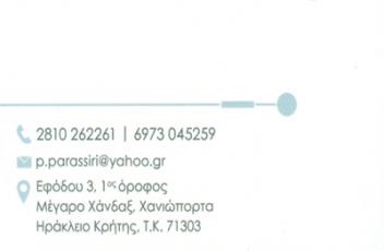customer tabsΕπικοινωνίαΔευτέρα & Παρασκευή: 09:00 - 13:00Τρίτη, Τετάρτη & Πέμπτη: 17:30 - 21:00κατόπιν ραντεβούΧειρουργοί ΟδοντίατροιΥγείαΕφόδου 3, Μέγαρο Χανδαξ (1ος όροφος), ΗράκλειοΗΡΑΚΛΕΙΟ ΗΡΑΚΛΕΙΟΥΗΡΑΚΛΕΙΟΚΡΗΤΗ 2810262261 6973045259p.parasiri@yahoo.gr Το προτείνω (έχει προταθεί 0 φορές) ΦωτογραφίεςFacebook LikeShare on FacebookTweet Widget